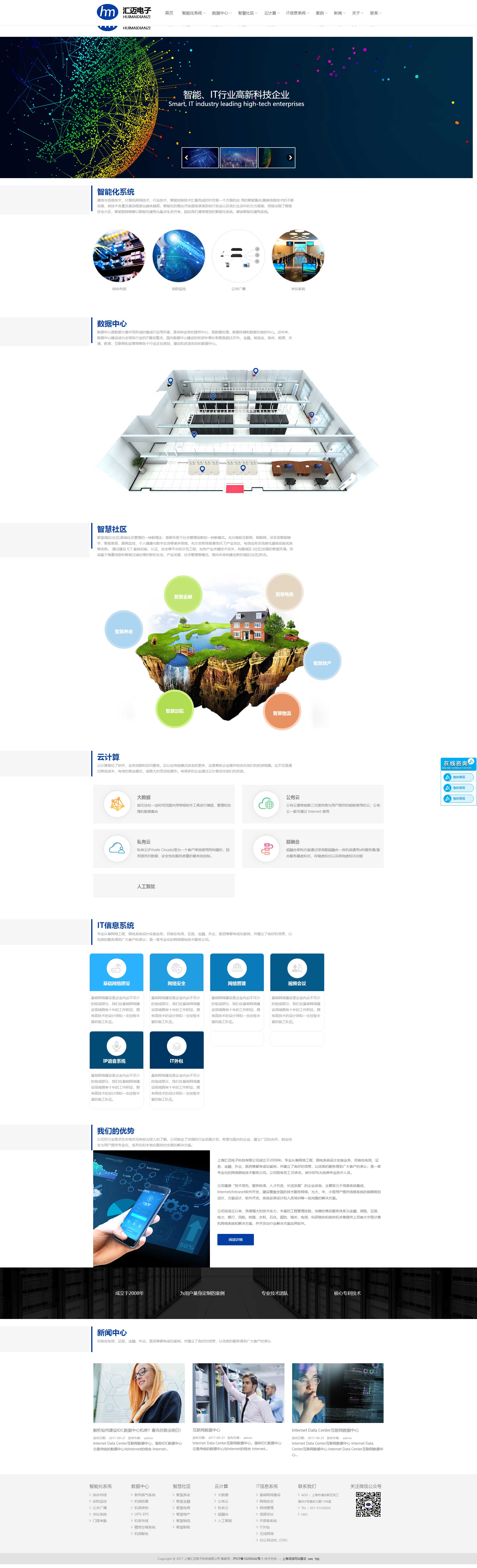 上海匯邁電子科技有限公司成立于2008年。專業從事計算機網絡系統集成、智能化工程、智慧城市、云計算、大數據。
